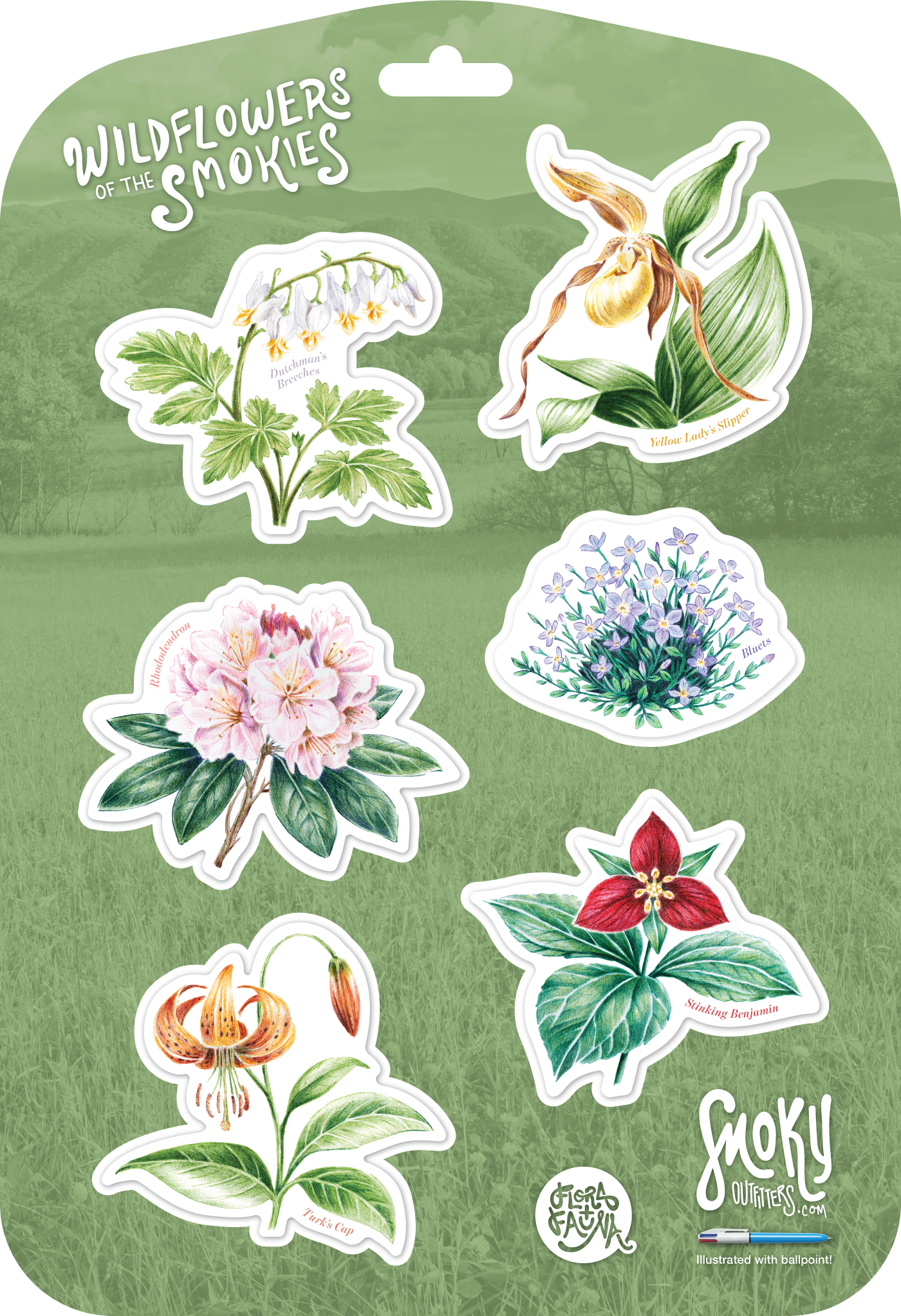 Smoky Outfitters is proud to launch our new collection of handcrafted art. Featuring a blend of digital and traditional mediums with an emphasis on natural forms and the intrinsic beauty of wild things. Stickers are available on traditional vinyl or eco-friendly craft paper substrate.