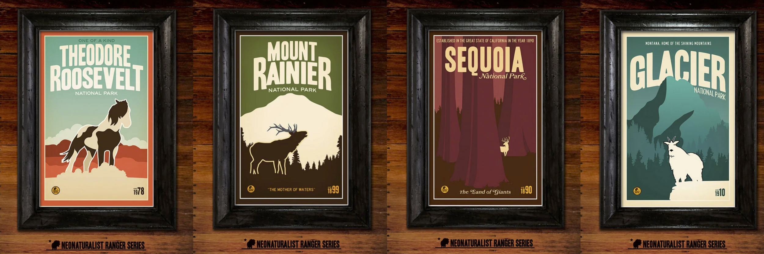 The WPA posters of the 1930s didn't just advertise national parks — they made people believe in them. Bold, graphic, and unapologetically beautiful, they turned wilderness into something worth fighting for. The NeoNaturalist Ranger Series is our tribute to that tradition, and our attempt to push it forward.
